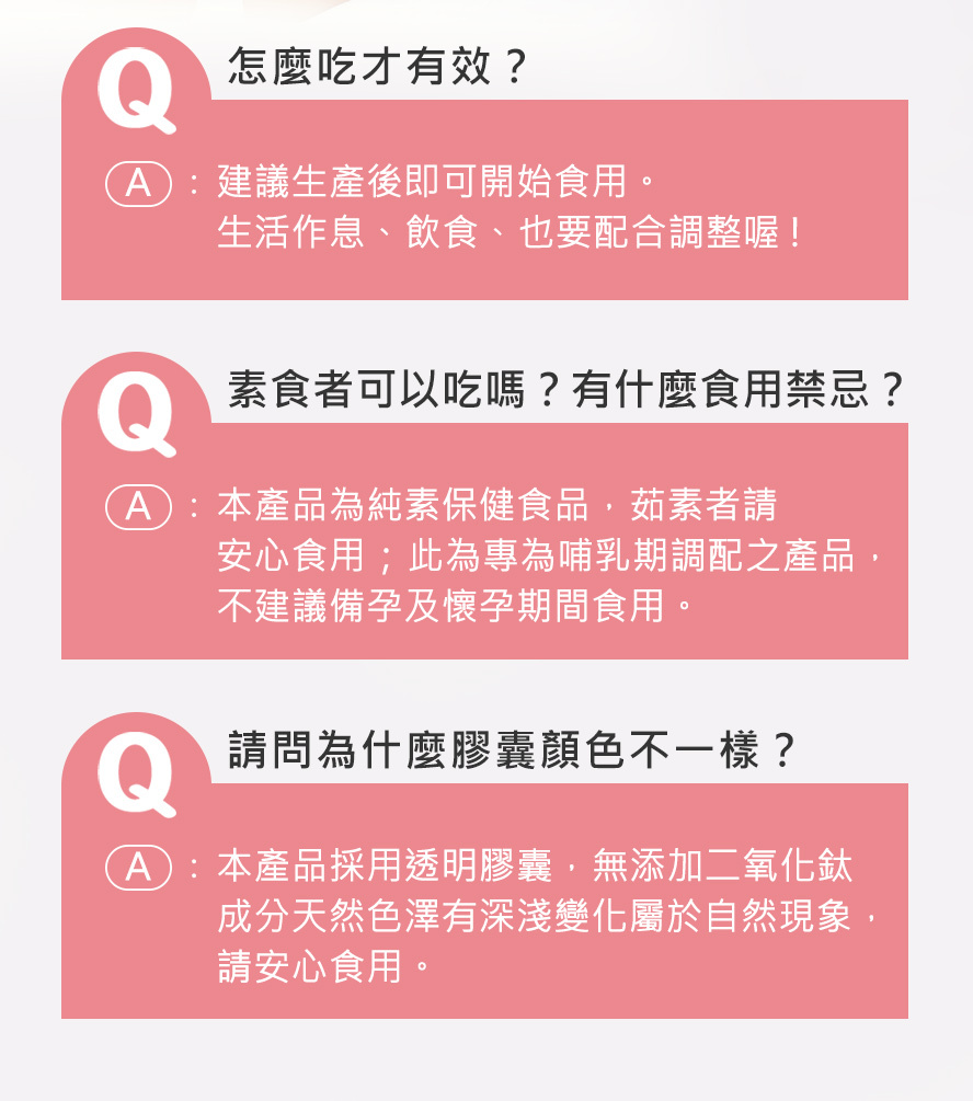 推薦生產後開始使用,持續補充至哺乳期結束。