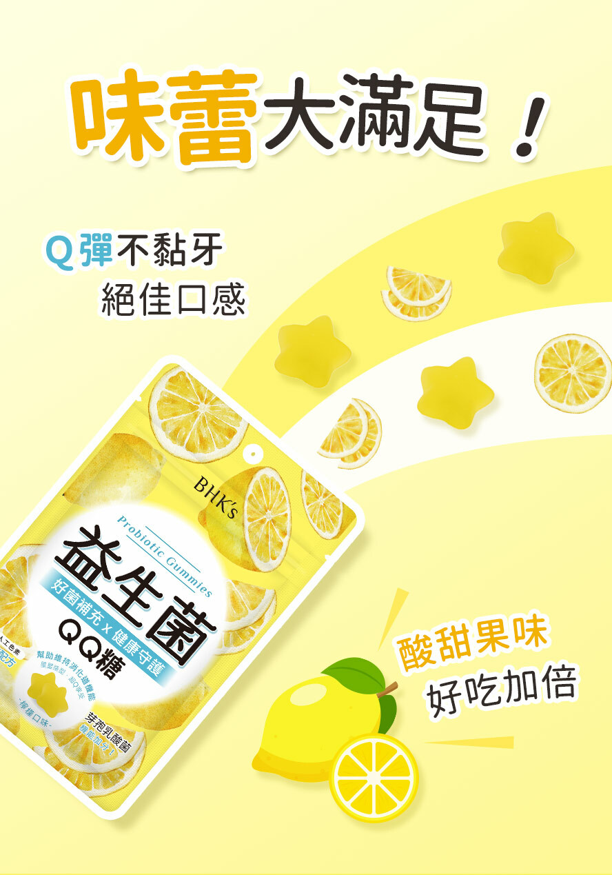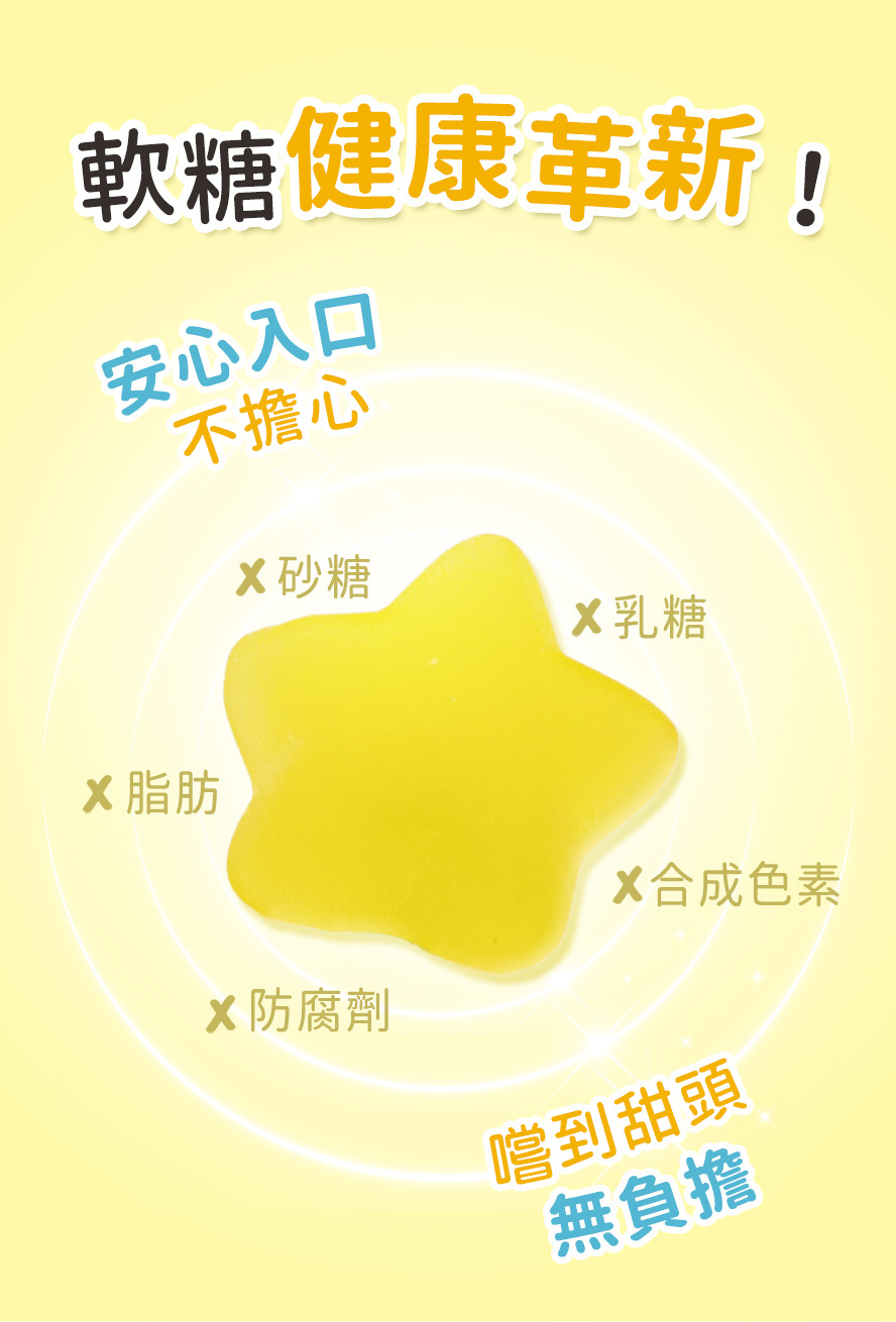 特別研發機能性軟糖,酸甜檸檬口味,好吃低卡無負擔