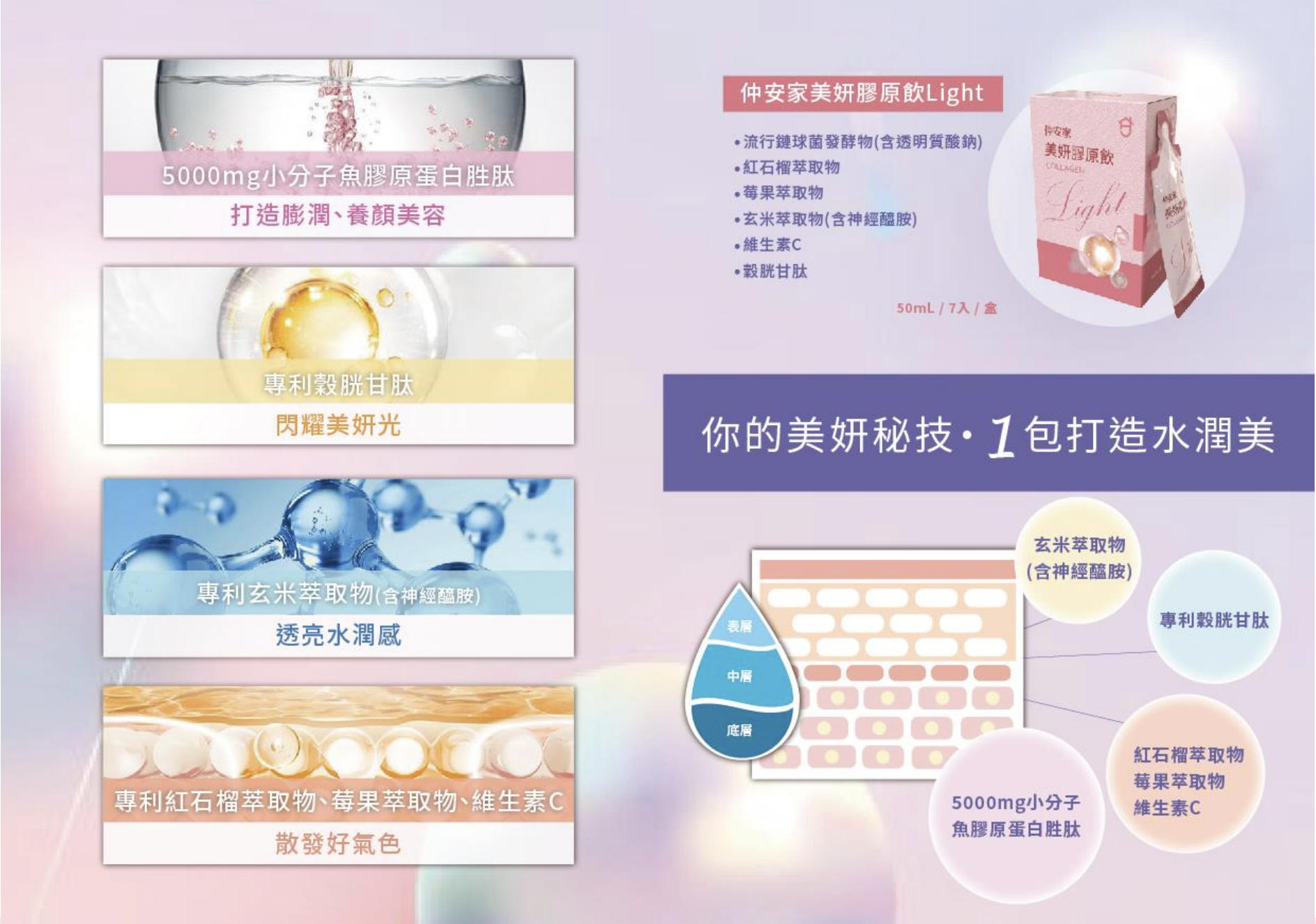 適用對象:不分男性女性皆合適、活忙碌重視保養的上班族、時常跑戶外紫外線曝曬者、想維持青春美麗者