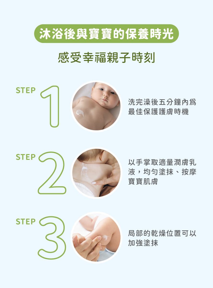 肌膚清潔後,取適量塗抹肌膚輕柔按摩完全吸收