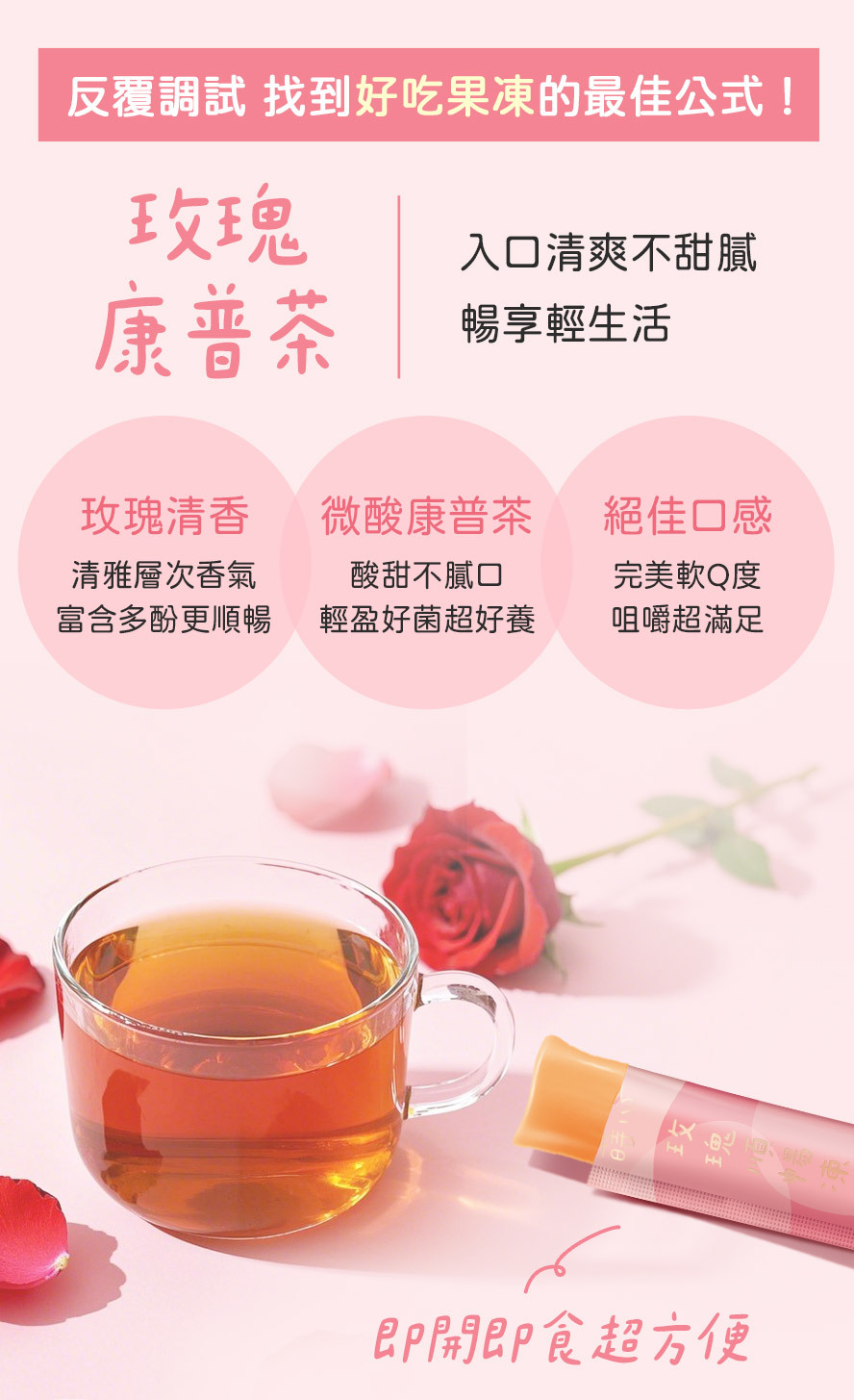 ✔爽口:酸甜玫瑰康普茶兼具美味與機能,順暢也能很享受