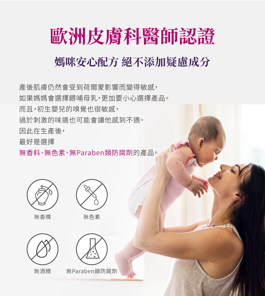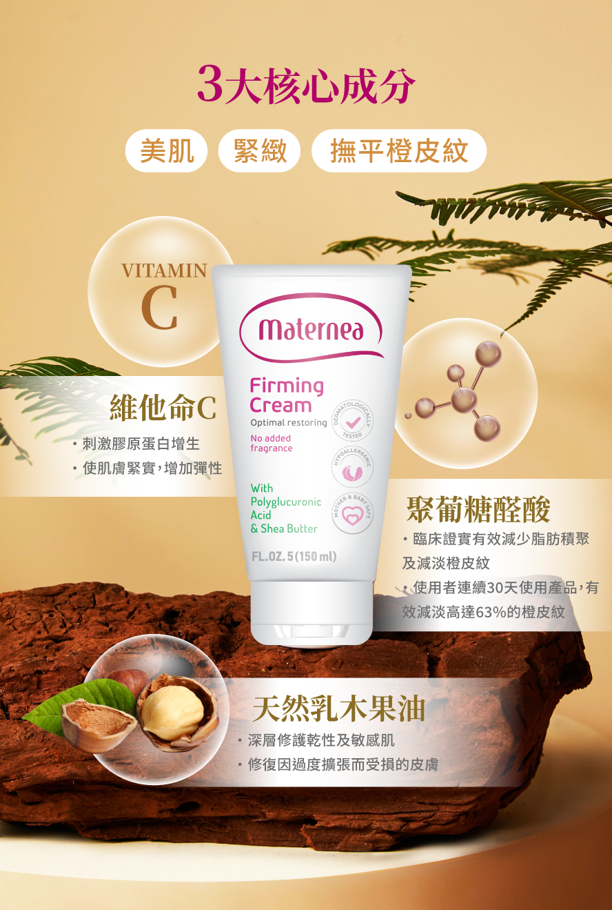 產後修身緊膚:臨床證實有效減淡橙皮紋,修復受損皮膚,加速皮膚復原,幫助回復產前體態。