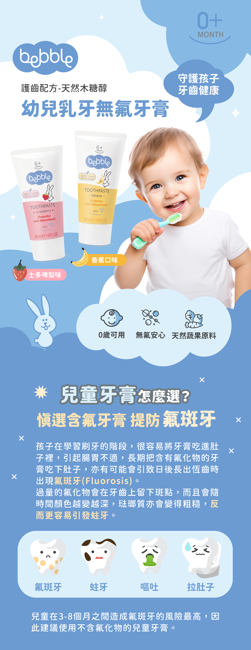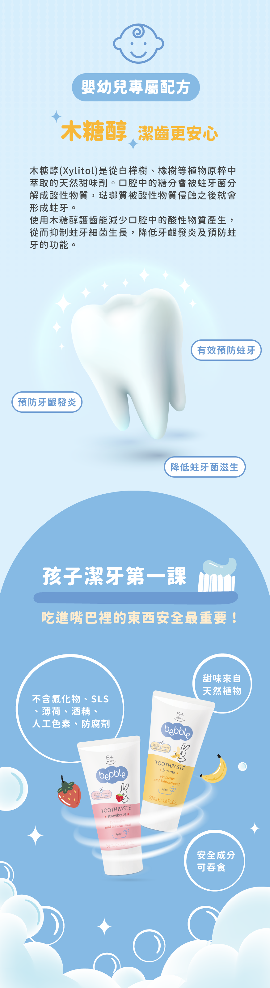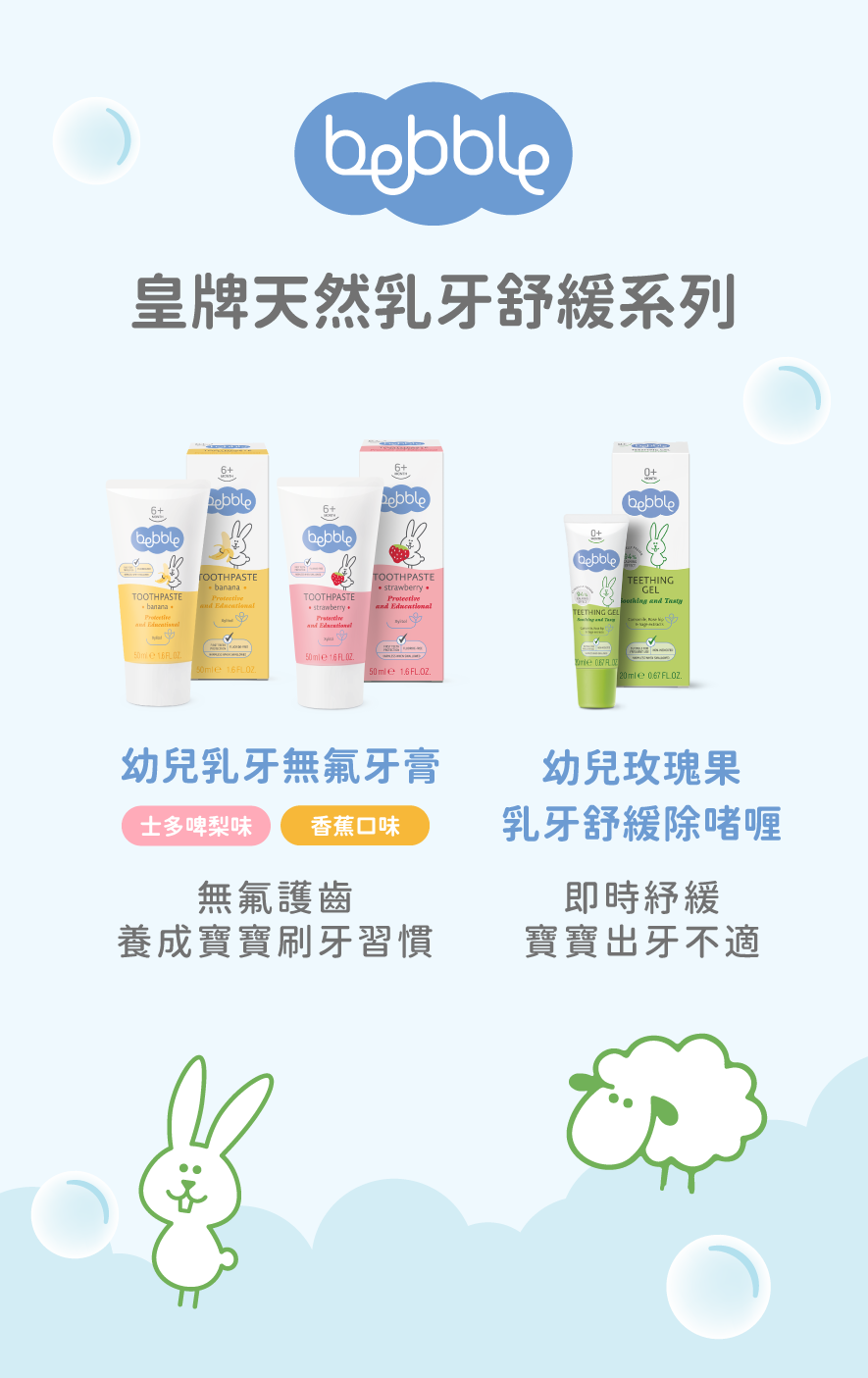 Bebble幼兒乳牙無氟牙膏-士多啤梨味 (可吞食)