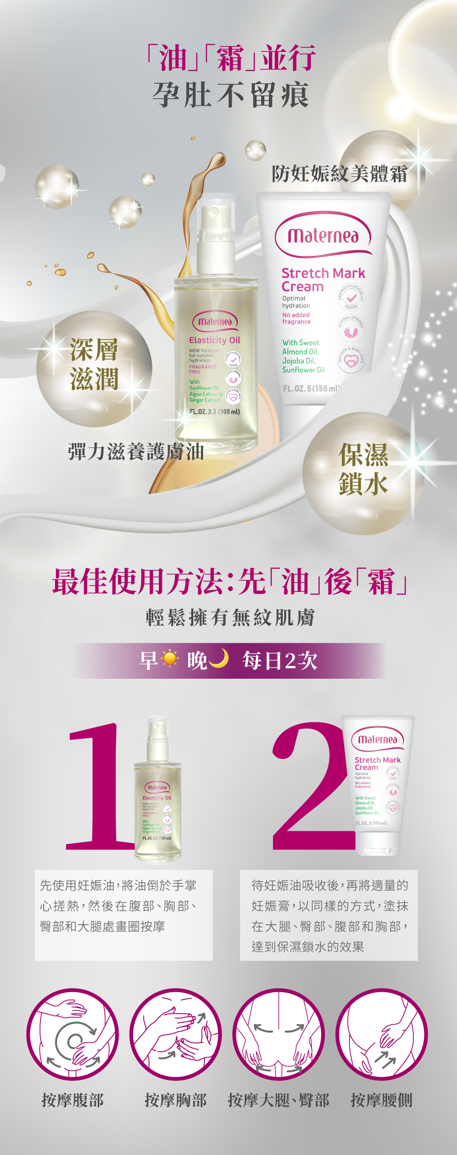 *消委會5星好評*唯一品牌防妊娠紋油+防妊娠紋霜同時不含香料、香料致敏物及塑化劑,令孕媽媽用得放心!